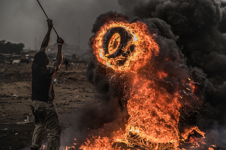 There is a huge place in Ghana, where garbages of electronic devices gather from all over the world. The scenery of this place seems like one of those near-future-based Sci-fi flicks: slopes of plastic and metallic objects—taken away from deserted mobile phones, computer monitors, TV sets, air-conditioners, etc., and incinerating smokes, and barren earth. Meanwhile, people living in here have their own sets of troubles and dreams.
