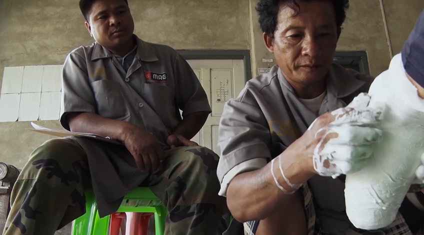 This documentary shows the short process of manufacturing prosthetic legs for injured soldiers, and the soldiers wearing prosthetic loges in a simplistic way, but it leaves a complicated and weird sensation on its audiences. The injured soldiers in this film are members of the insurgent resistance army who fights against Burma governmental army. This insurgent army is not a single organization, but constituted with groups of various ethnicities. The ex-servicemen hold a workshop for making prosthetic legs, make injured soldiers participate in the manufacturing process, and give prosthetic legs to those soldiers for free regardless of their ethnicity. While dealing with extremely sensitive topic in terms of politics, the atmosphere of the film is warm and usual. This film is a peculiar cinematic experience which brings usual sense on nonusual-ness, grotesque feeling, and kind mood altogether. [Hwang Miyojo]